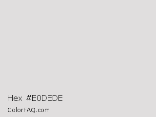 Hex #e0dede Color is a very light red color and the nearest color is Gainsboro #dcdcdc. Hex code #e0dede and RGB value is rgb(224,222,222). In RGB color space, this color is composed of 88% red, 87% green, 87% blue, In CMYK color space, this color is composed of 0% cyan, 1% magenta, 1% yellow , 12% black , In HSL color space, this color has a hue angle of 0° , 3% saturation and 87% lightness.