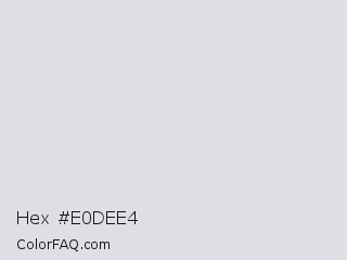 Hex #e0dee4 Color is a very light indigo color and the nearest color is Bon Jour #e5e0e1. Hex code #e0dee4 and RGB value is rgb(224,222,228). In RGB color space, this color is composed of 88% red, 87% green, 89% blue, In CMYK color space, this color is composed of 2% cyan, 3% magenta, 0% yellow , 11% black , In HSL color space, this color has a hue angle of 260° , 10% saturation and 88% lightness.