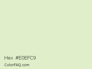 Hex #e0efc9 Color is a very light green color and the nearest color is Kidnapper #e1ead4. Hex code #e0efc9 and RGB value is rgb(224,239,201). In RGB color space, this color is composed of 88% red, 94% green, 79% blue, In CMYK color space, this color is composed of 6% cyan, 0% magenta, 16% yellow , 6% black , In HSL color space, this color has a hue angle of 84° , 54% saturation and 86% lightness.