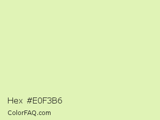 Hex #e0f3b6 Color is a very light lime color and the nearest color is Caper #dcedb4. Hex code #e0f3b6 and RGB value is rgb(224,243,182). In RGB color space, this color is composed of 88% red, 95% green, 71% blue, In CMYK color space, this color is composed of 8% cyan, 0% magenta, 25% yellow , 5% black , In HSL color space, this color has a hue angle of 79° , 72% saturation and 83% lightness.