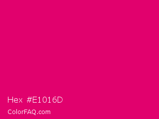 Hex #e1016d Color is a normal rose color and the nearest color is Red Purple #e40078. Hex code #e1016d and RGB value is rgb(225,1,109). In RGB color space, this color is composed of 88% red, 0% green, 43% blue, In CMYK color space, this color is composed of 0% cyan, 100% magenta, 52% yellow , 12% black , In HSL color space, this color has a hue angle of 331° , 99% saturation and 44% lightness.
