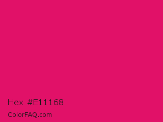 Hex #e11168 Color is a normal rose color and the nearest color is Ruby #e0115f. Hex code #e11168 and RGB value is rgb(225,17,104). In RGB color space, this color is composed of 88% red, 7% green, 41% blue, In CMYK color space, this color is composed of 0% cyan, 92% magenta, 54% yellow , 12% black , In HSL color space, this color has a hue angle of 335° , 86% saturation and 47% lightness.