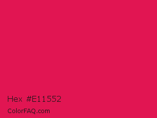 Hex #e11552 Color is a normal rose color and the nearest color is Spanish Crimson #e51a4c. Hex code #e11552 and RGB value is rgb(225,21,82). In RGB color space, this color is composed of 88% red, 8% green, 32% blue, In CMYK color space, this color is composed of 0% cyan, 91% magenta, 64% yellow , 12% black , In HSL color space, this color has a hue angle of 342° , 83% saturation and 48% lightness.