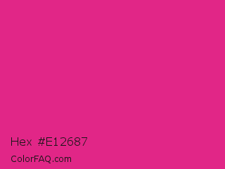 Hex #e12687 Color is a normal rose color and the nearest color is Barbie Pink #e0218a. Hex code #e12687 and RGB value is rgb(225,38,135). In RGB color space, this color is composed of 88% red, 15% green, 53% blue, In CMYK color space, this color is composed of 0% cyan, 83% magenta, 40% yellow , 12% black , In HSL color space, this color has a hue angle of 329° , 76% saturation and 52% lightness.
