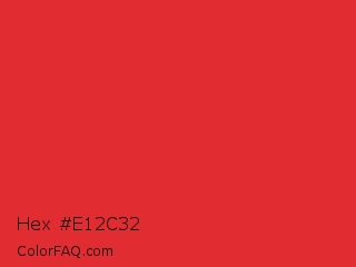 Hex #e12c32 Color is a normal red color and the nearest color is Permanent Geranium Lake #e12c2c. Hex code #e12c32 and RGB value is rgb(225,44,50). In RGB color space, this color is composed of 88% red, 17% green, 20% blue, In CMYK color space, this color is composed of 0% cyan, 80% magenta, 78% yellow , 12% black , In HSL color space, this color has a hue angle of 358° , 75% saturation and 53% lightness.