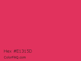 Hex #e1315d Color is a normal red color and the nearest color is Cerise Red #de3163. Hex code #e1315d and RGB value is rgb(225,49,93). In RGB color space, this color is composed of 88% red, 19% green, 36% blue, In CMYK color space, this color is composed of 0% cyan, 78% magenta, 59% yellow , 12% black , In HSL color space, this color has a hue angle of 345° , 75% saturation and 54% lightness.
