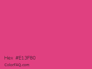 Hex #e13f80 Color is a normal rose color and the nearest color is Cerise Pink #ec3b83. Hex code #e13f80 and RGB value is rgb(225,63,128). In RGB color space, this color is composed of 88% red, 25% green, 50% blue, In CMYK color space, this color is composed of 0% cyan, 72% magenta, 43% yellow , 12% black , In HSL color space, this color has a hue angle of 336° , 73% saturation and 56% lightness.