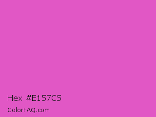 Hex #e157c5 Color is a light magenta color and the nearest color is Orchid #da70d6. Hex code #e157c5 and RGB value is rgb(225,87,197). In RGB color space, this color is composed of 88% red, 34% green, 77% blue, In CMYK color space, this color is composed of 0% cyan, 61% magenta, 12% yellow , 12% black , In HSL color space, this color has a hue angle of 312° , 70% saturation and 61% lightness.