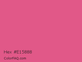 Hex #e15888 Color is a light rose color and the nearest color is Fandango Pink #de5285. Hex code #e15888 and RGB value is rgb(225,88,136). In RGB color space, this color is composed of 88% red, 35% green, 53% blue, In CMYK color space, this color is composed of 0% cyan, 61% magenta, 40% yellow , 12% black , In HSL color space, this color has a hue angle of 339° , 70% saturation and 61% lightness.