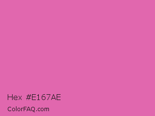 Hex #e167ae Color is a light magenta color and the nearest color is Thulian Pink #de6fa1. Hex code #e167ae and RGB value is rgb(225,103,174). In RGB color space, this color is composed of 88% red, 40% green, 68% blue, In CMYK color space, this color is composed of 0% cyan, 54% magenta, 23% yellow , 12% black , In HSL color space, this color has a hue angle of 325° , 67% saturation and 64% lightness.