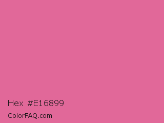 Hex #e16899 Color is a light rose color and the nearest color is Thulian Pink #de6fa1. Hex code #e16899 and RGB value is rgb(225,104,153). In RGB color space, this color is composed of 88% red, 41% green, 60% blue, In CMYK color space, this color is composed of 0% cyan, 54% magenta, 32% yellow , 12% black , In HSL color space, this color has a hue angle of 336° , 67% saturation and 65% lightness.