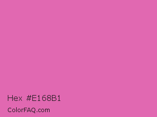 Hex #e168b1 Color is a light magenta color and the nearest color is Thulian Pink #de6fa1. Hex code #e168b1 and RGB value is rgb(225,104,177). In RGB color space, this color is composed of 88% red, 41% green, 69% blue, In CMYK color space, this color is composed of 0% cyan, 54% magenta, 21% yellow , 12% black , In HSL color space, this color has a hue angle of 324° , 67% saturation and 65% lightness.