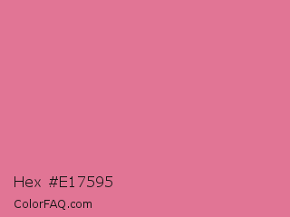 Hex #e17595 Color is a light rose color and the nearest color is Bright Blush #e47698. Hex code #e17595 and RGB value is rgb(225,117,149). In RGB color space, this color is composed of 88% red, 46% green, 58% blue, In CMYK color space, this color is composed of 0% cyan, 48% magenta, 34% yellow , 12% black , In HSL color space, this color has a hue angle of 342° , 64% saturation and 67% lightness.