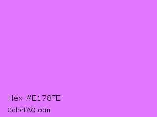 Hex #e178fe Color is a light purple color and the nearest color is Heliotrope #df73ff. Hex code #e178fe and RGB value is rgb(225,120,254). In RGB color space, this color is composed of 88% red, 47% green, 100% blue, In CMYK color space, this color is composed of 11% cyan, 53% magenta, 0% yellow , 0% black , In HSL color space, this color has a hue angle of 287° , 99% saturation and 73% lightness.