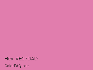 Hex #e17dad Color is a light rose color and the nearest color is Middle Purple #d982b5. Hex code #e17dad and RGB value is rgb(225,125,173). In RGB color space, this color is composed of 88% red, 49% green, 68% blue, In CMYK color space, this color is composed of 0% cyan, 44% magenta, 23% yellow , 12% black , In HSL color space, this color has a hue angle of 331° , 63% saturation and 69% lightness.