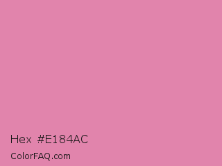 Hex #e184ac Color is a light rose color and the nearest color is Carissma #ea88a8. Hex code #e184ac and RGB value is rgb(225,132,172). In RGB color space, this color is composed of 88% red, 52% green, 67% blue, In CMYK color space, this color is composed of 0% cyan, 41% magenta, 24% yellow , 12% black , In HSL color space, this color has a hue angle of 334° , 61% saturation and 70% lightness.