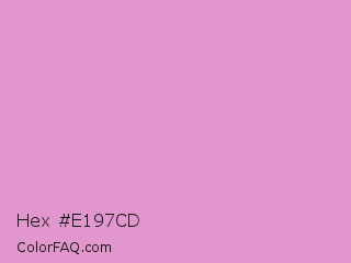 Hex #e197cd Color is a light magenta color and the nearest color is Light Orchid #e29cd2. Hex code #e197cd and RGB value is rgb(225,151,205). In RGB color space, this color is composed of 88% red, 59% green, 80% blue, In CMYK color space, this color is composed of 0% cyan, 33% magenta, 9% yellow , 12% black , In HSL color space, this color has a hue angle of 316° , 55% saturation and 74% lightness.