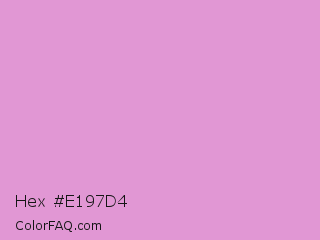 Hex #e197d4 Color is a light magenta color and the nearest color is Light Orchid #e29cd2. Hex code #e197d4 and RGB value is rgb(225,151,212). In RGB color space, this color is composed of 88% red, 59% green, 83% blue, In CMYK color space, this color is composed of 0% cyan, 33% magenta, 6% yellow , 12% black , In HSL color space, this color has a hue angle of 311° , 55% saturation and 74% lightness.