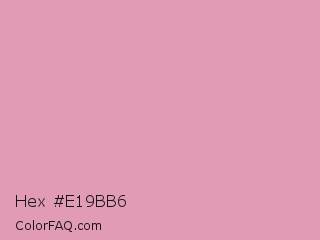 Hex #e19bb6 Color is a light rose color and the nearest color is Shocking #e292c0. Hex code #e19bb6 and RGB value is rgb(225,155,182). In RGB color space, this color is composed of 88% red, 61% green, 71% blue, In CMYK color space, this color is composed of 0% cyan, 31% magenta, 19% yellow , 12% black , In HSL color space, this color has a hue angle of 337° , 54% saturation and 75% lightness.
