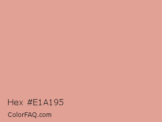 Hex #e1a195 Color is a light red color and the nearest color is Tonys Pink #e79f8c. Hex code #e1a195 and RGB value is rgb(225,161,149). In RGB color space, this color is composed of 88% red, 63% green, 58% blue, In CMYK color space, this color is composed of 0% cyan, 28% magenta, 34% yellow , 12% black , In HSL color space, this color has a hue angle of 9° , 56% saturation and 73% lightness.