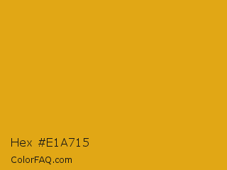 Hex #e1a715 Color is a normal orange color and the nearest color is Golden Grass #daa520. Hex code #e1a715 and RGB value is rgb(225,167,21). In RGB color space, this color is composed of 88% red, 65% green, 8% blue, In CMYK color space, this color is composed of 0% cyan, 26% magenta, 91% yellow , 12% black , In HSL color space, this color has a hue angle of 43° , 83% saturation and 48% lightness.