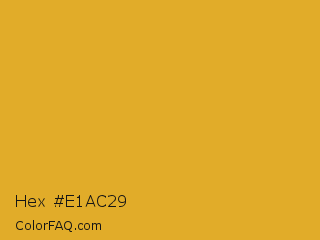 Hex #e1ac29 Color is a normal orange color and the nearest color is Urobilin #e1ad21. Hex code #e1ac29 and RGB value is rgb(225,172,41). In RGB color space, this color is composed of 88% red, 67% green, 16% blue, In CMYK color space, this color is composed of 0% cyan, 24% magenta, 82% yellow , 12% black , In HSL color space, this color has a hue angle of 43° , 75% saturation and 52% lightness.