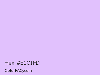 Hex #e1c1fd Color is a very light purple color and the nearest color is Pale Lavender #dcd0ff. Hex code #e1c1fd and RGB value is rgb(225,193,253). In RGB color space, this color is composed of 88% red, 76% green, 99% blue, In CMYK color space, this color is composed of 11% cyan, 24% magenta, 0% yellow , 1% black , In HSL color space, this color has a hue angle of 272° , 94% saturation and 87% lightness.