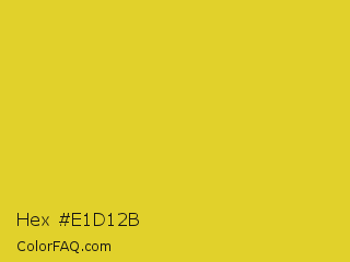 Hex #e1d12b Color is a normal yellow color and the nearest color is Sunflower #e4d422. Hex code #e1d12b and RGB value is rgb(225,209,43). In RGB color space, this color is composed of 88% red, 82% green, 17% blue, In CMYK color space, this color is composed of 0% cyan, 7% magenta, 81% yellow , 12% black , In HSL color space, this color has a hue angle of 55° , 75% saturation and 53% lightness.