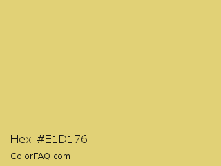 Hex #e1d176 Color is a light yellow color and the nearest color is Chenin #dfcd6f. Hex code #e1d176 and RGB value is rgb(225,209,118). In RGB color space, this color is composed of 88% red, 82% green, 46% blue, In CMYK color space, this color is composed of 0% cyan, 7% magenta, 48% yellow , 12% black , In HSL color space, this color has a hue angle of 51° , 64% saturation and 67% lightness.