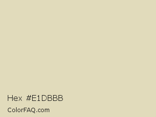 Hex #e1dbbb Color is a very light yellow color and the nearest color is Stark White #e5d7bd. Hex code #e1dbbb and RGB value is rgb(225,219,187). In RGB color space, this color is composed of 88% red, 86% green, 73% blue, In CMYK color space, this color is composed of 0% cyan, 3% magenta, 17% yellow , 12% black , In HSL color space, this color has a hue angle of 51° , 39% saturation and 81% lightness.