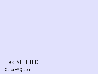 Hex #e1e1fd Color is a very light blue color and the nearest color is Lavender Mist #e6e6fa. Hex code #e1e1fd and RGB value is rgb(225,225,253). In RGB color space, this color is composed of 88% red, 88% green, 99% blue, In CMYK color space, this color is composed of 11% cyan, 11% magenta, 0% yellow , 1% black , In HSL color space, this color has a hue angle of 240° , 88% saturation and 94% lightness.