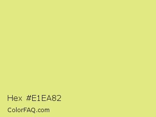 Hex #e1ea82 Color is a light yellow color and the nearest color is Key Lime #e8f48c. Hex code #e1ea82 and RGB value is rgb(225,234,130). In RGB color space, this color is composed of 88% red, 92% green, 51% blue, In CMYK color space, this color is composed of 4% cyan, 0% magenta, 44% yellow , 8% black , In HSL color space, this color has a hue angle of 65° , 71% saturation and 71% lightness.