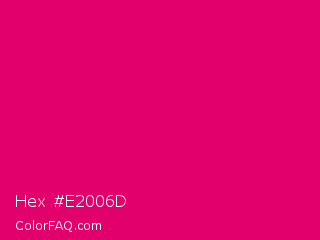Hex #e2006d Color is a normal rose color and the nearest color is Red Purple #e40078. Hex code #e2006d and RGB value is rgb(226,0,109). In RGB color space, this color is composed of 89% red, 0% green, 43% blue, In CMYK color space, this color is composed of 0% cyan, 100% magenta, 52% yellow , 11% black , In HSL color space, this color has a hue angle of 331° , 100% saturation and 44% lightness.