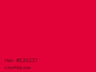 Hex #e20237 Color is a normal red color and the nearest color is Medium Candy Apple Red #e2062c. Hex code #e20237 and RGB value is rgb(226,2,55). In RGB color space, this color is composed of 89% red, 1% green, 22% blue, In CMYK color space, this color is composed of 0% cyan, 99% magenta, 76% yellow , 11% black , In HSL color space, this color has a hue angle of 346° , 98% saturation and 45% lightness.