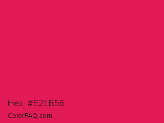 Hex #e21b56 Color is a normal rose color and the nearest color is Spanish Crimson #e51a4c. Hex code #e21b56 and RGB value is rgb(226,27,86). In RGB color space, this color is composed of 89% red, 11% green, 34% blue, In CMYK color space, this color is composed of 0% cyan, 88% magenta, 62% yellow , 11% black , In HSL color space, this color has a hue angle of 342° , 79% saturation and 50% lightness.