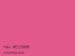 Hex #e2588b Color is a light rose color and the nearest color is Fandango Pink #de5285. Hex code #e2588b and RGB value is rgb(226,88,139). In RGB color space, this color is composed of 89% red, 35% green, 55% blue, In CMYK color space, this color is composed of 0% cyan, 61% magenta, 38% yellow , 11% black , In HSL color space, this color has a hue angle of 338° , 70% saturation and 62% lightness.