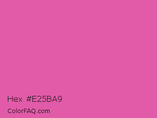 Hex #e25ba9 Color is a light magenta color and the nearest color is Raspberry Pink #e25098. Hex code #e25ba9 and RGB value is rgb(226,91,169). In RGB color space, this color is composed of 89% red, 36% green, 66% blue, In CMYK color space, this color is composed of 0% cyan, 60% magenta, 25% yellow , 11% black , In HSL color space, this color has a hue angle of 325° , 70% saturation and 62% lightness.