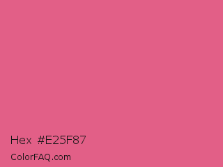 Hex #e25f87 Color is a light rose color and the nearest color is Blush #de5d83. Hex code #e25f87 and RGB value is rgb(226,95,135). In RGB color space, this color is composed of 89% red, 37% green, 53% blue, In CMYK color space, this color is composed of 0% cyan, 58% magenta, 40% yellow , 11% black , In HSL color space, this color has a hue angle of 342° , 69% saturation and 63% lightness.