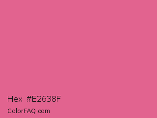 Hex #e2638f Color is a light rose color and the nearest color is Blush #de5d83. Hex code #e2638f and RGB value is rgb(226,99,143). In RGB color space, this color is composed of 89% red, 39% green, 56% blue, In CMYK color space, this color is composed of 0% cyan, 56% magenta, 37% yellow , 11% black , In HSL color space, this color has a hue angle of 339° , 69% saturation and 64% lightness.