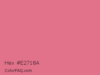 Hex #e2718a Color is a light red color and the nearest color is Pale Red Violet #db7093. Hex code #e2718a and RGB value is rgb(226,113,138). In RGB color space, this color is composed of 89% red, 44% green, 54% blue, In CMYK color space, this color is composed of 0% cyan, 50% magenta, 39% yellow , 11% black , In HSL color space, this color has a hue angle of 347° , 66% saturation and 66% lightness.