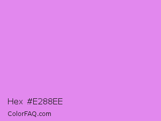 Hex #e288ee Color is a light magenta color and the nearest color is Lavender Magenta #ee82ee. Hex code #e288ee and RGB value is rgb(226,136,238). In RGB color space, this color is composed of 89% red, 53% green, 93% blue, In CMYK color space, this color is composed of 5% cyan, 43% magenta, 0% yellow , 7% black , In HSL color space, this color has a hue angle of 293° , 75% saturation and 73% lightness.