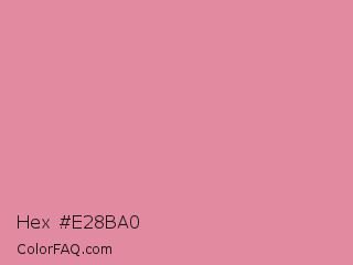 Hex #e28ba0 Color is a light red color and the nearest color is Ruddy Pink #e18e96. Hex code #e28ba0 and RGB value is rgb(226,139,160). In RGB color space, this color is composed of 89% red, 55% green, 63% blue, In CMYK color space, this color is composed of 0% cyan, 38% magenta, 29% yellow , 11% black , In HSL color space, this color has a hue angle of 346° , 60% saturation and 72% lightness.