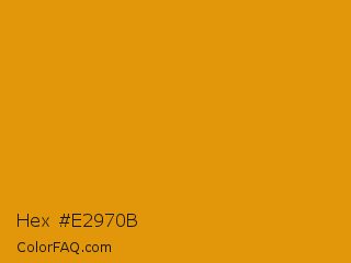 Hex #e2970b Color is a normal orange color and the nearest color is Gamboge #e49b0f. Hex code #e2970b and RGB value is rgb(226,151,11). In RGB color space, this color is composed of 89% red, 59% green, 4% blue, In CMYK color space, this color is composed of 0% cyan, 33% magenta, 95% yellow , 11% black , In HSL color space, this color has a hue angle of 39° , 91% saturation and 46% lightness.