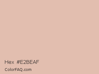 Hex #e2beaf Color is a light orange color and the nearest color is Rose Fog #e7bcb4. Hex code #e2beaf and RGB value is rgb(226,190,175). In RGB color space, this color is composed of 89% red, 75% green, 69% blue, In CMYK color space, this color is composed of 0% cyan, 16% magenta, 23% yellow , 11% black , In HSL color space, this color has a hue angle of 18° , 47% saturation and 79% lightness.