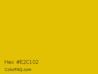 Hex #e2c102 Color is a normal yellow color and the nearest color is Corn #e7bf05. Hex code #e2c102 and RGB value is rgb(226,193,2). In RGB color space, this color is composed of 89% red, 76% green, 1% blue, In CMYK color space, this color is composed of 0% cyan, 15% magenta, 99% yellow , 11% black , In HSL color space, this color has a hue angle of 51° , 98% saturation and 45% lightness.