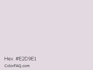 Hex #e2d9e1 Color is a very light magenta color and the nearest color is Bon Jour #e5e0e1. Hex code #e2d9e1 and RGB value is rgb(226,217,225). In RGB color space, this color is composed of 89% red, 85% green, 88% blue, In CMYK color space, this color is composed of 0% cyan, 4% magenta, 0% yellow , 11% black , In HSL color space, this color has a hue angle of 307° , 13% saturation and 87% lightness.