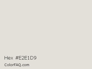 Hex #e2e1d9 Color is a very light yellow color and the nearest color is Periglacial Blue #e1e6d6. Hex code #e2e1d9 and RGB value is rgb(226,225,217). In RGB color space, this color is composed of 89% red, 88% green, 85% blue, In CMYK color space, this color is composed of 0% cyan, 0% magenta, 4% yellow , 11% black , In HSL color space, this color has a hue angle of 53° , 13% saturation and 87% lightness.