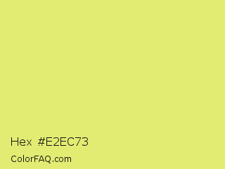 Hex #e2ec73 Color is a light yellow color and the nearest color is Manz #eeef78. Hex code #e2ec73 and RGB value is rgb(226,236,115). In RGB color space, this color is composed of 89% red, 93% green, 45% blue, In CMYK color space, this color is composed of 4% cyan, 0% magenta, 51% yellow , 7% black , In HSL color space, this color has a hue angle of 65° , 76% saturation and 69% lightness.