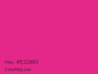 Hex #e32889 Color is a normal rose color and the nearest color is Barbie Pink #e0218a. Hex code #e32889 and RGB value is rgb(227,40,137). In RGB color space, this color is composed of 89% red, 16% green, 54% blue, In CMYK color space, this color is composed of 0% cyan, 82% magenta, 40% yellow , 11% black , In HSL color space, this color has a hue angle of 329° , 77% saturation and 52% lightness.