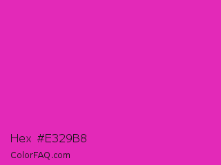 Hex #e329b8 Color is a normal magenta color and the nearest color is Frostbite #e936a7. Hex code #e329b8 and RGB value is rgb(227,41,184). In RGB color space, this color is composed of 89% red, 16% green, 72% blue, In CMYK color space, this color is composed of 0% cyan, 82% magenta, 19% yellow , 11% black , In HSL color space, this color has a hue angle of 314° , 77% saturation and 53% lightness.